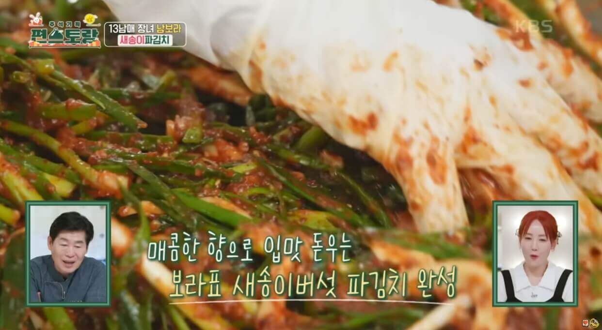 감칠맛이 폭발하는 남보라 님의 파김치에는 놀라운 특급 노하우가 있습니다. 쫄깃한 식감을 더욱 극대화시켜 주고 파김치만의 중독 강한 매콤함도 조화를 이루어 기가 막히는 맛을 선보이는 13남매 남보라 님의 파김치 노하우를 공개합니다. 생각지못한 재료가 들어가서 깜짝 놀랐습니다!